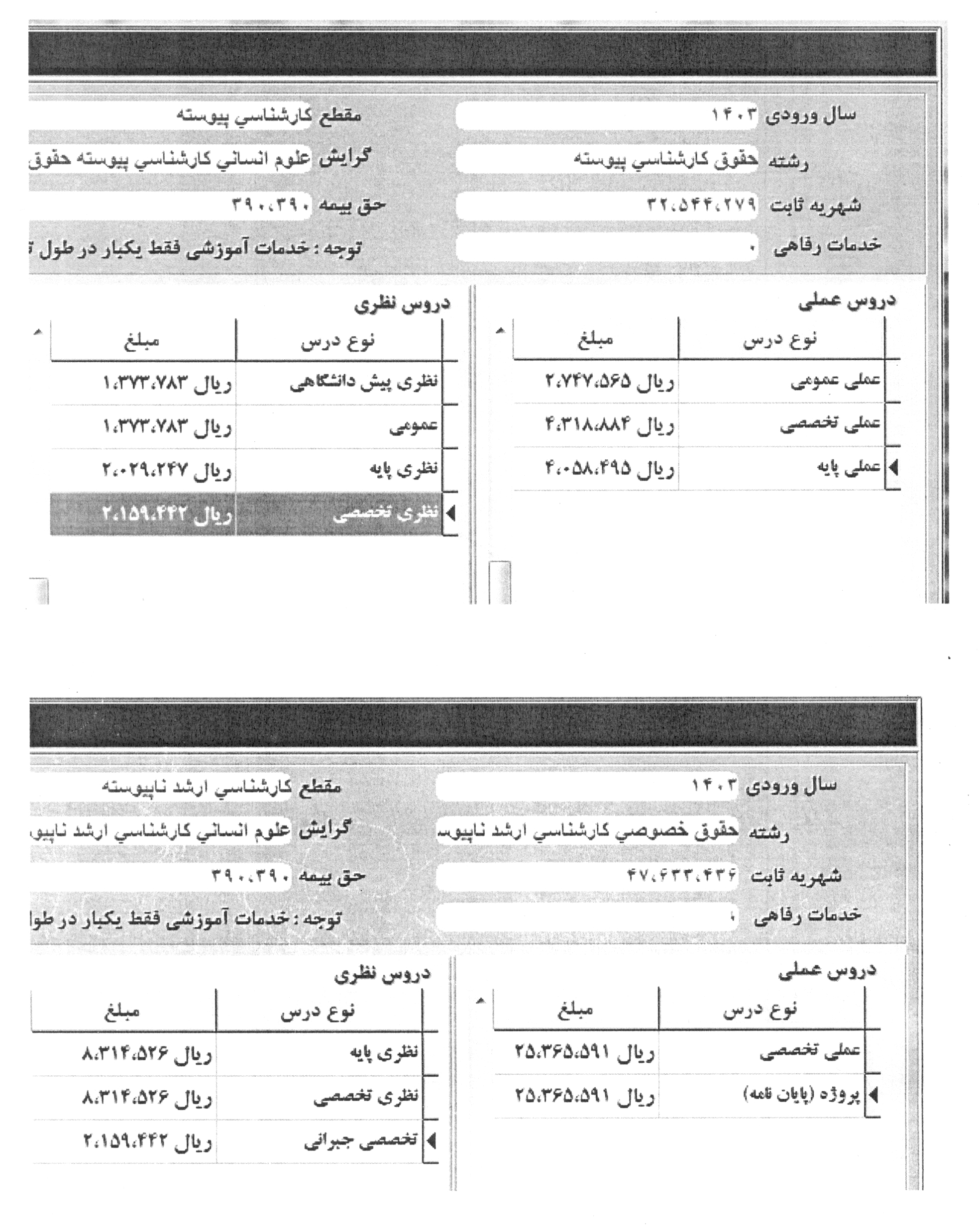 شهریه مقاطع مختلف در سال 1403